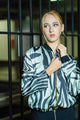 Chaqueta bomber confeccionada en tejido satinado con estampado zebra print,  hecho para Chiarella en Italia. Forro y cierre frontal de cremallera metálica dorada. Acabados elásticos en puños, cuello y cintura.