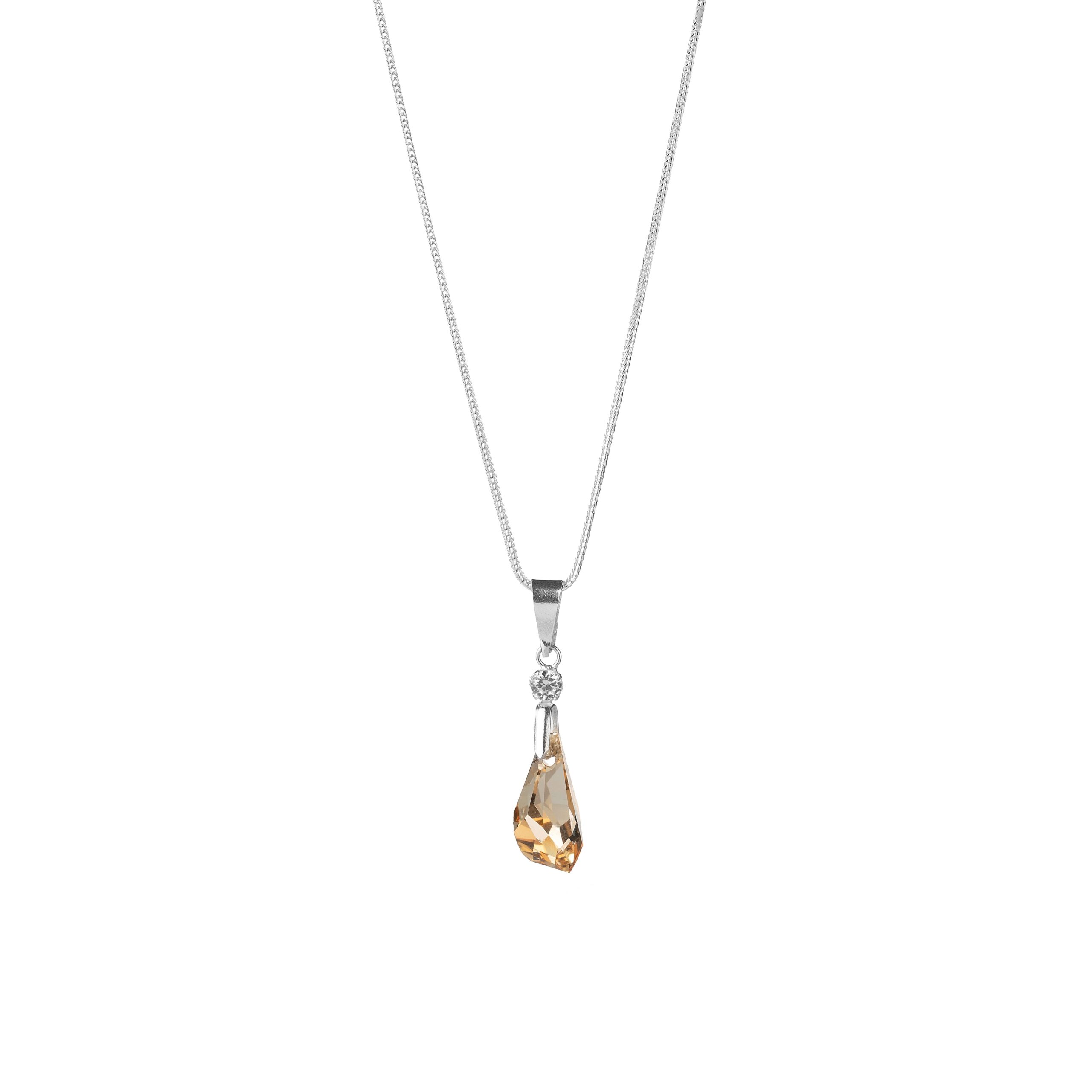 Collar fabricado en plata de ley 950 con dije colgante en forma de gota y mini circon engastado