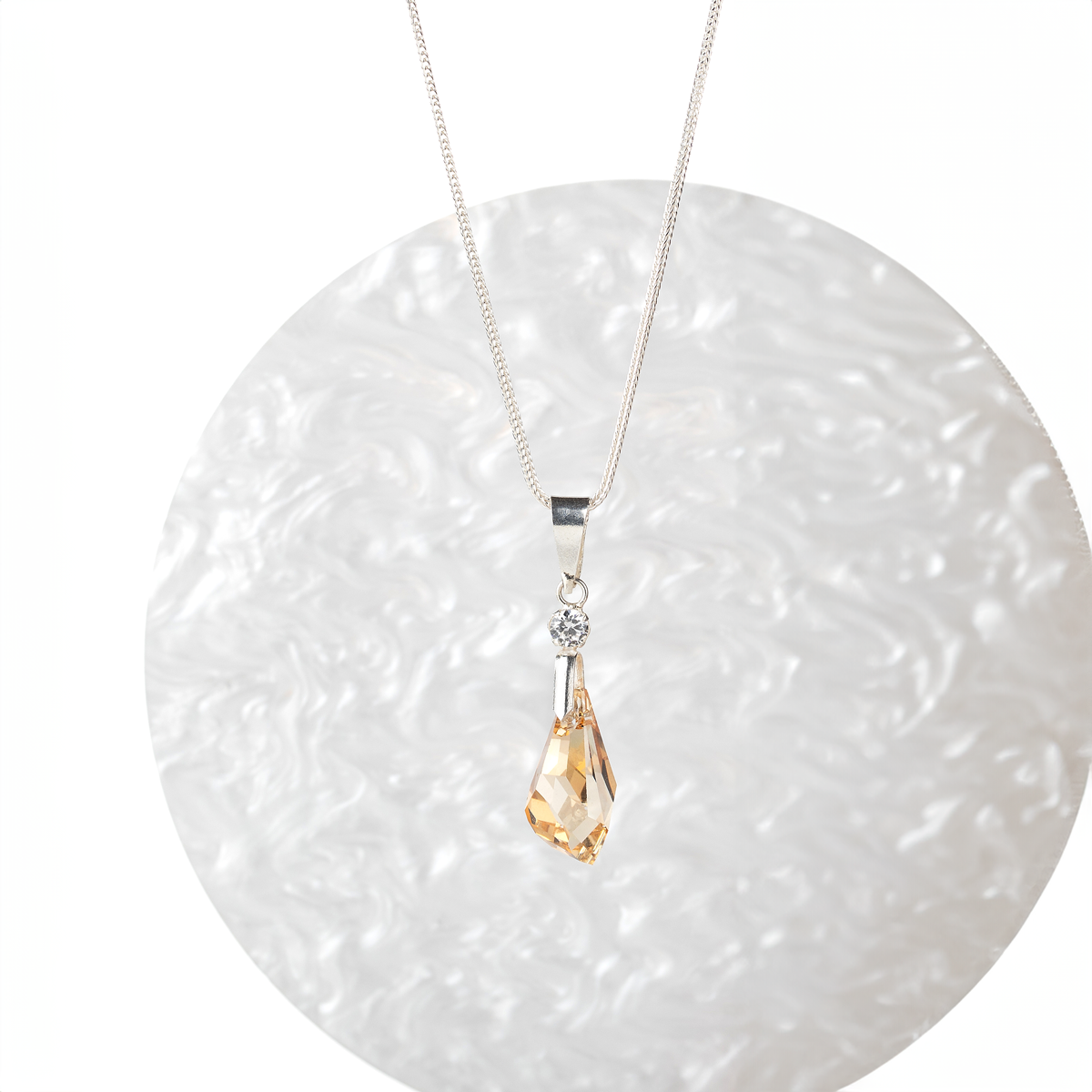 Material: Plata de ley, piedras circonia color champagne / blanco