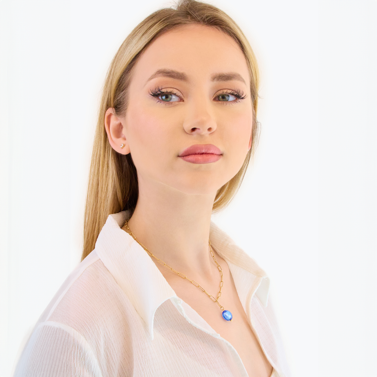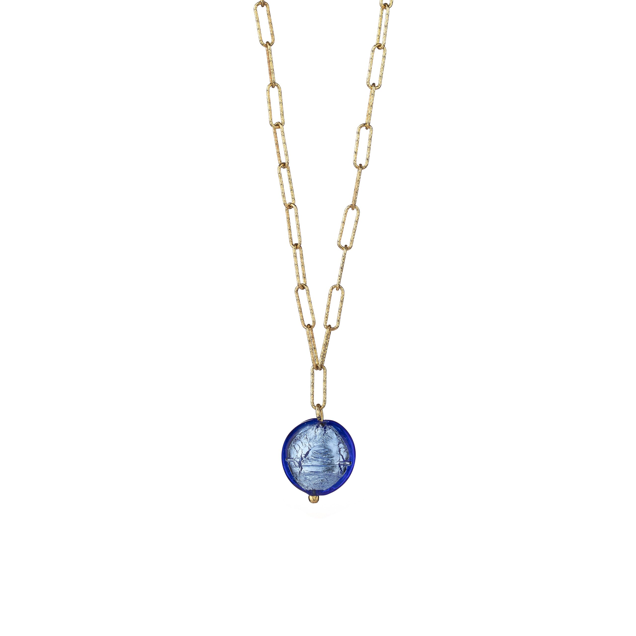 Material: Plata de ley / Plata de ley enchapada en oro de 18K, laca protectora, piedra azul de vidrio de Murano
